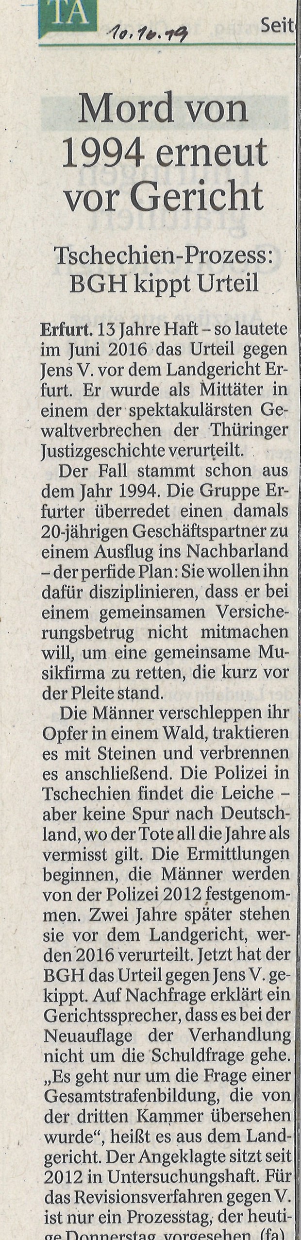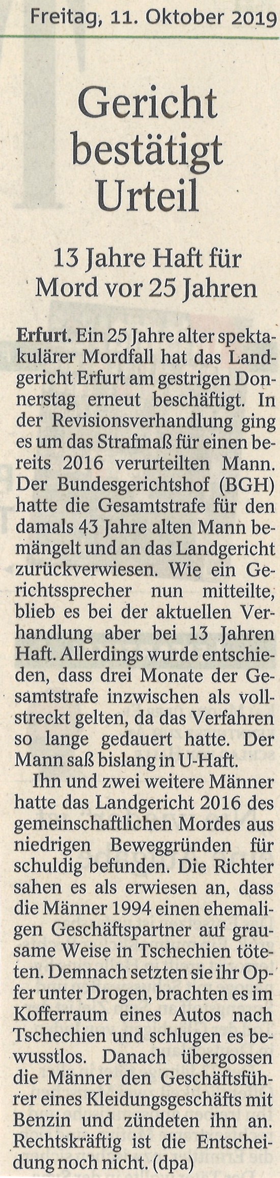 In dem Revisionsverfahren vor dem Landgericht Erfurt ging es um die Überprüfung des Strafmaßes, welches bereits mit Urteil im Jahr 2016 verkündet worden ist.
